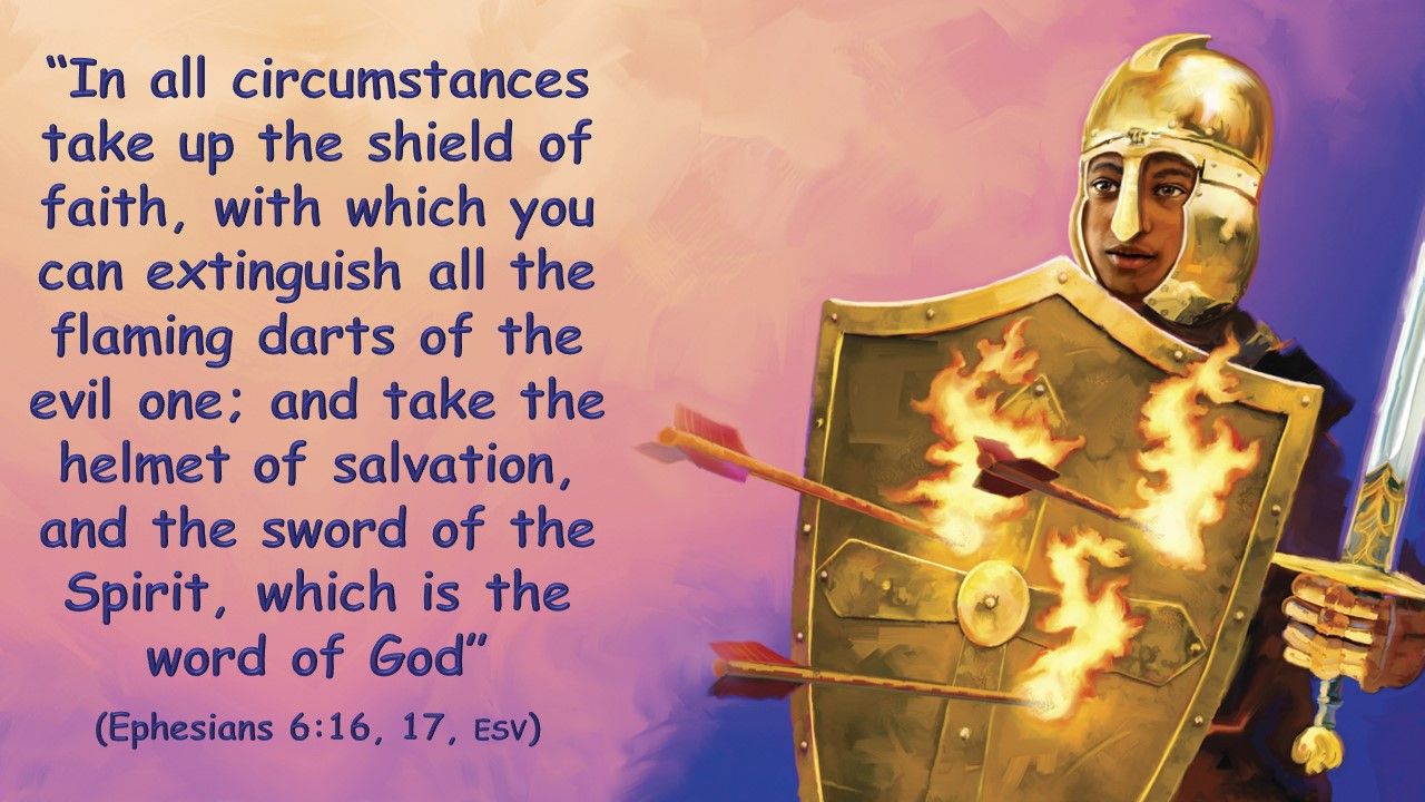 Memory Text: “In all circumstances take up the shield of faith, with which you can extinguish all the flaming darts of the evil one; and take the helmet of salvation, and the sword of the Spirit, which is the word of God” (Ephesians 6:16, 17, ESV).