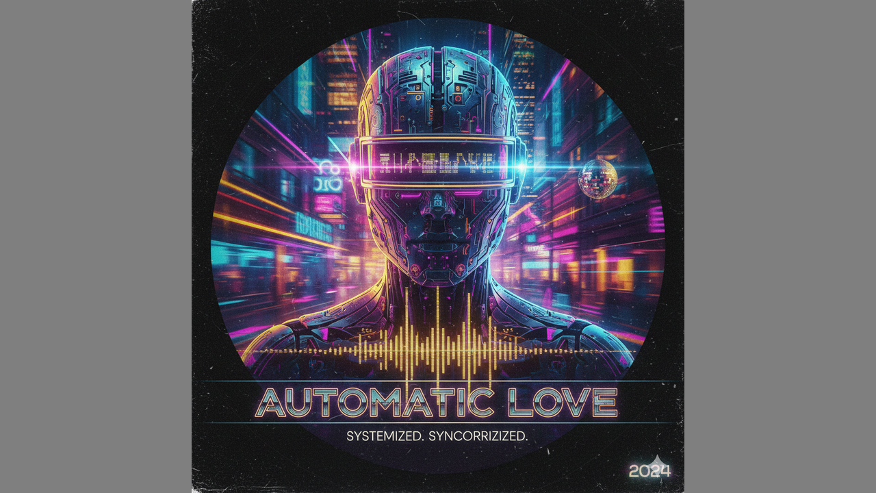 (Tempo: 124 BPM) (Style: Filter House / Nu-Disco) [Intro] (The track kicks off with a heavy low-pass filter. A thick, thumb-slapped funk bassline loops every two bars. Gradually, the filter opens up, revealing a crisp snare on the 2 and 4.) [Verse 1] (The full drum kit enters: a punchy, compressed 909 kick. A disco guitar scratch-chords on the upbeat. The bassline is driving and syncopated.) (Vocoded Voice - monotone, rhythmic): Digital soul. Analog heart. Electric control. This is the start. Repeat the motion. Feel the machine. Lost in the ocean. Of the silver screen. [Pre-Chorus] (The bassline stays steady, but chirpy, retro synth stabs start dancing around the stereo field—bright, 80s-inspired sawtooth pips.) (Vocoded Voice): Circuitry... In the night... Energy... Neon light... [Chorus] (The "Drop": The bass gets even funkier with a slight growl. A high-energy disco guitar lick slides into the transition.) (Vocoded Voice - Harmonized/Choral): Automatic Love. Automatic Love. Systemized. Synchronized. Automatic Love. [Bridge] (Everything drops out except the crunchy drums and the funk bass. A hand-clap sample joins the snare. The "Chirpy Synths" start a playful, call-and-response melody with the guitar licks.) (Vocoded Voice - rhythmic staccato): One. Zero. One. Zero. Work. The. Body. Solo. One. Zero. One. Zero. High. Fidelity. Flow. [Build-Up] (A rising white-noise "whoosh." The bassline begins to loop faster and faster as a high-pass filter cuts the low end out, creating tension.) (Vocoded Voice - rising pitch): Upload the vibe. Upload the vibe. Upload the vibe... NOW. [Chorus / Outro] (The bass crashes back in with full force. The synth stabs are at their most playful, swirling around the "Automatic Love" hook. The track stays locked in the groove for 32 bars before slowly filtering back down into a single, pulsing kick drum.) (Vocoded Voice - fading out): Automatic... Automatic... System... shut... down.