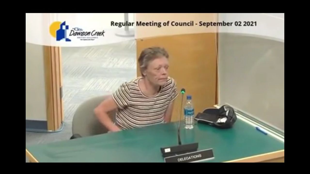 Canadian scientist Gina Gold Speaks before the local City Council about Human Rights and the Nuremberg Code. Date: Sep 2, 2021; Location: Dowson Creek, Canada.