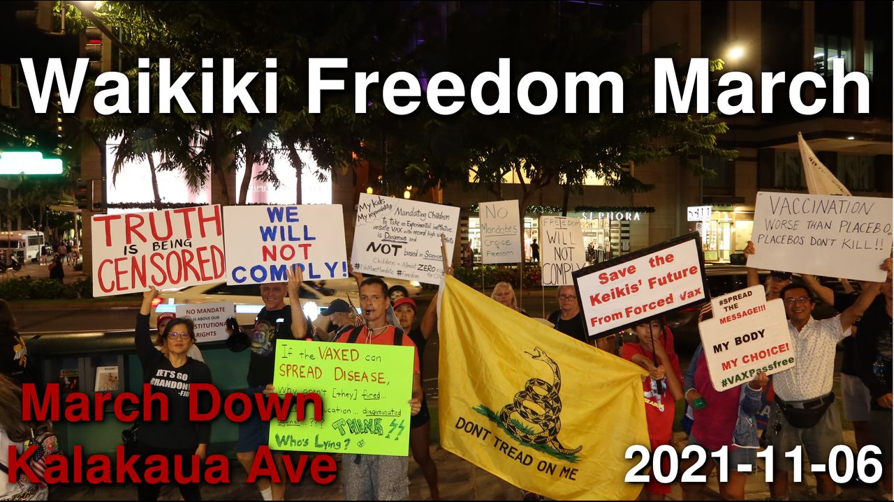 On November 6, 2021 dozens of liberty loving people marched up Kalakaua Avenue to remind people of the value of freedom. Before the march there was a special guest speaker, Ryan Luther, who taught how to fight medical discrimination by example. Be sure to watch the separate video with his complete speech.