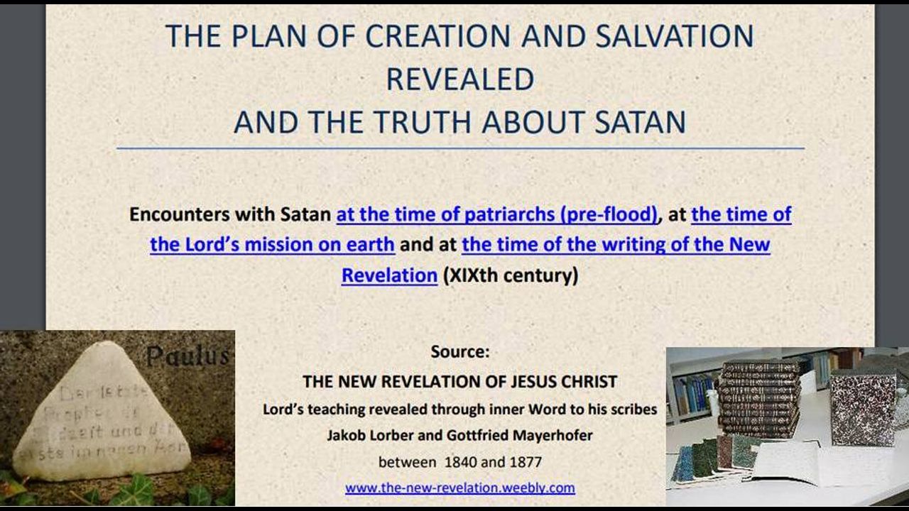 If a true seeker of truth, Christian or not, wants to reach to the ultimate truth on the creation of the material universe, the relationship of God with his first but fallen angel (who is also speaking here before the Lord), the development and most wonderful destiny of us small earthly people as children of God, which has been made possible only by God's descent among us and His final sacrifice on the cross... yes, these revelations are the place one does not want to miss. Here is the brochure with New Revelation excerpts that is being read in this video: https://ia902903.us.archive.org/24/items/TheLordAsAPoorManHG2/THE%20PLAN%20OF%20CREATION%20AND%20SALVATION%20REVEALED%20%26%20THE%20TRUTH%20ABOUT%20SATAN.pdf