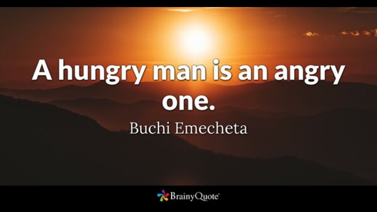 QUOTE ,, A hungry man is an angry one. Buchi Emecheta