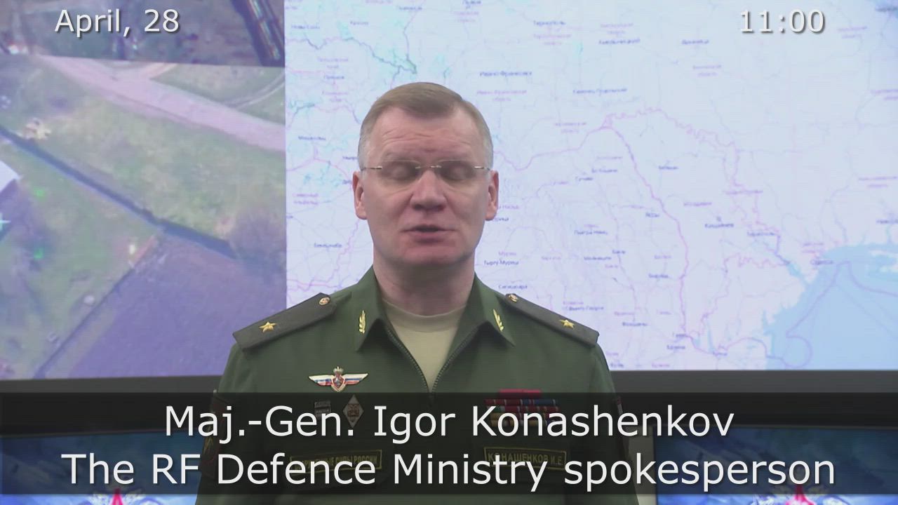 Briefing by Russian Defense Ministry - 11:00, April 28, 2022 - English, Full Text - 2 Ukrainian Tochka-U Ballistic Missiles have been Shot Down over Kherson, Fragments Landing in Shevchenkovsky Park.