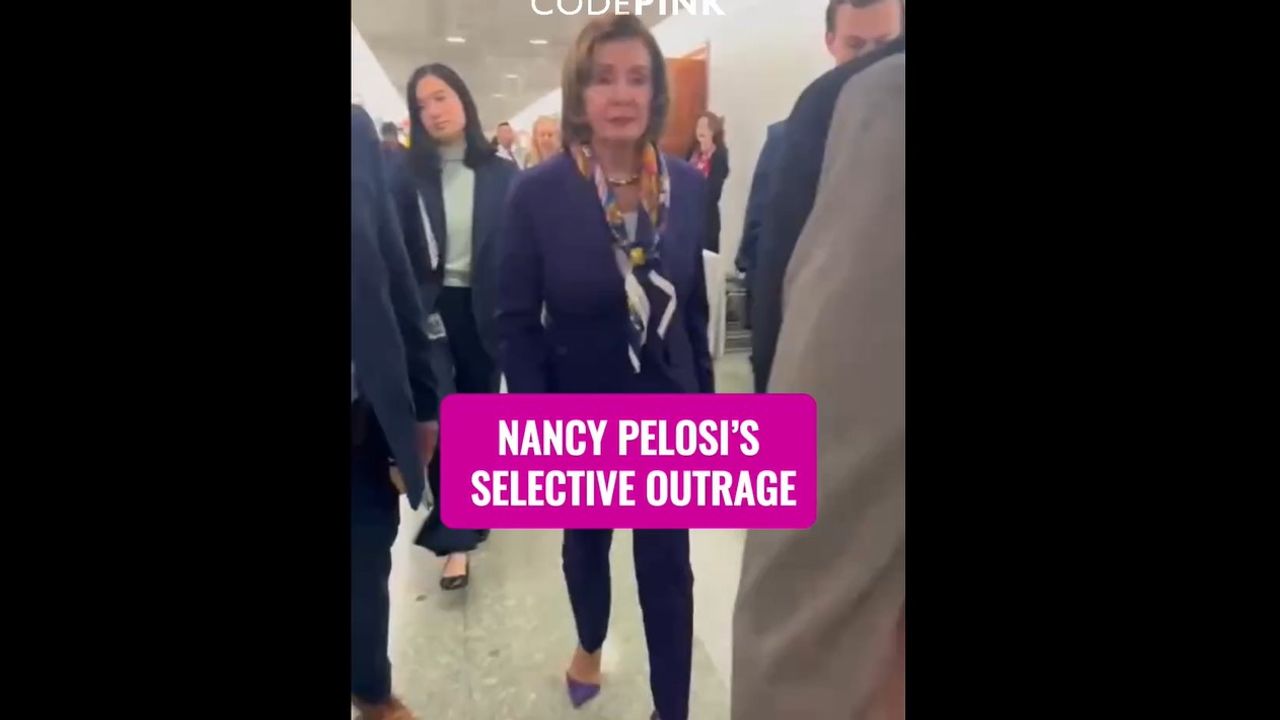 A peace activist (CodePink) called out the hypocrisy of Nancy Pelosi for giving a conference about the alleged oppression of Uyghur Muslims in China while supporting the ethnic cleansing of Palestinians carried by the Israeli occupation.