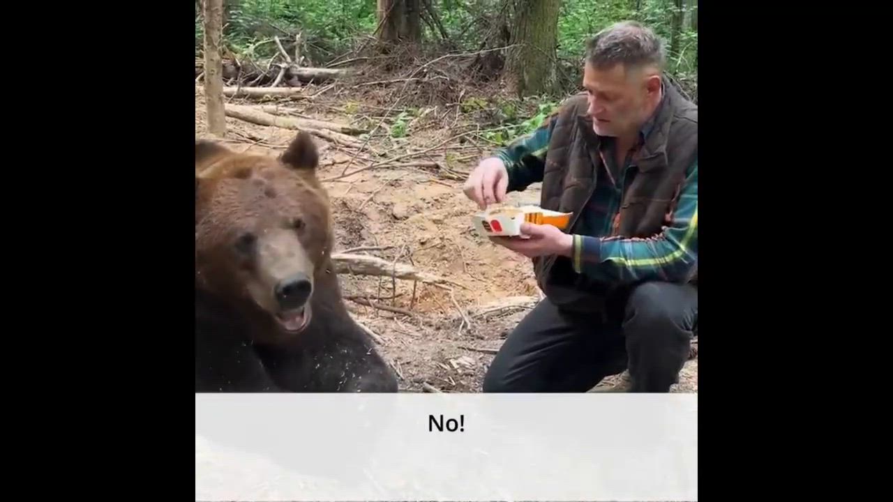 Tom the bear refuses Big Mac ... whole and in parts (1) [mirrored]