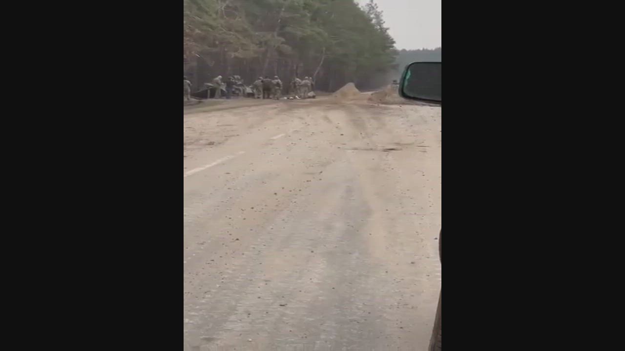 1. A group of Ukrainian infantryman casually waits on a highway believing the approaching tank to be friendly.