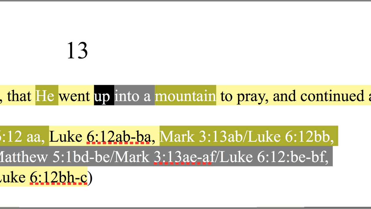 083. Rubric. Jesus Goes Up A Mountain and Prays All Night Long. Matthew 5:1, Mark 3:13, Luke 6:12