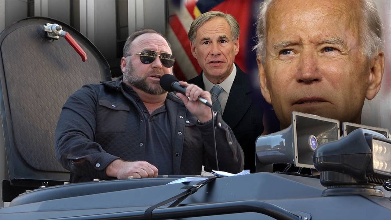 Alex Jones bullhorns the Governor's Mansion & Greg Abbott in the Infowars Battle Tank demanding him to confront Joe Biden
