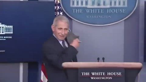 LIAR Dr. Fauci fiddling with his mask, potentially spreading a deadly virus all over the White House press room.