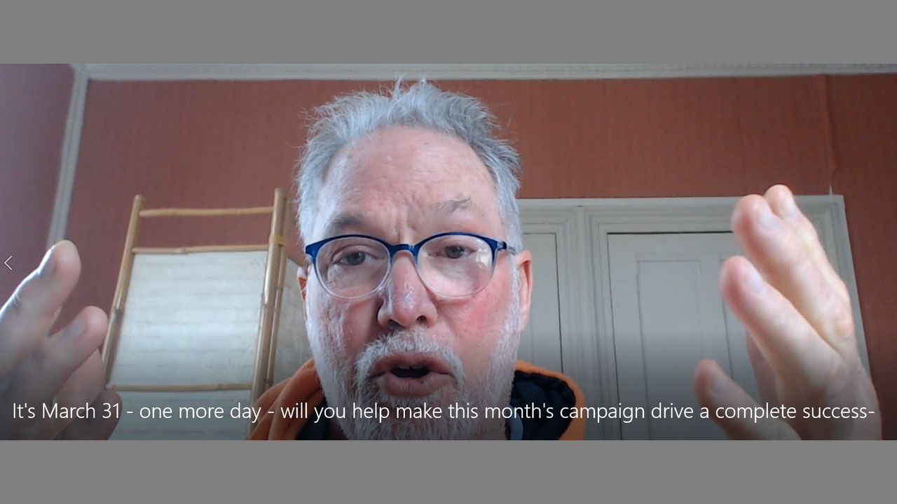 It's March 31, one more day, We're almost there! Will you help make sure this month's campaign drive is a complete success?