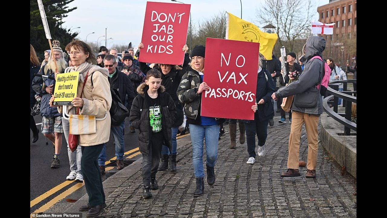 Thames Valley Police said protest moved across different areas of the town, including a Covid testing centre