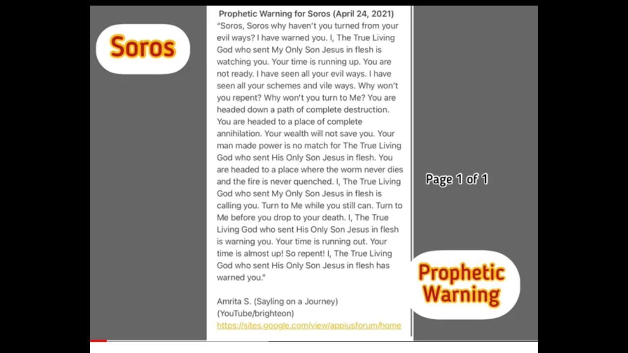 Prophetic warning for Soros! Wake up!!! April 24, 2021