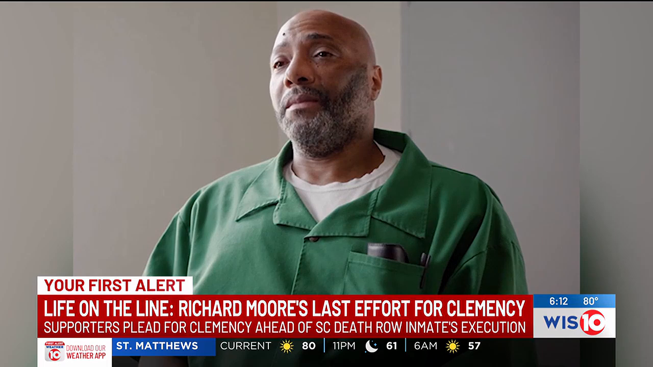 Moore went into a convenience store and walked towards the cooler. A witness heard James say “What the hell do you think you’re doing?”, before turning around to see Moore holding both of James’ hands in one of his, with his other hand holding James’ gun. Moore pointed the gun at the witness, before shooting and missing him, though the witness pretended to be dead. James pulled out another gun and shot at Moore several times, with one shot hitting Moore in the arm. Moore then shot James in the chest, before stealing $1408 from the store and fleeing in his truck, driving to a nearby residence to buy crack cocaine.