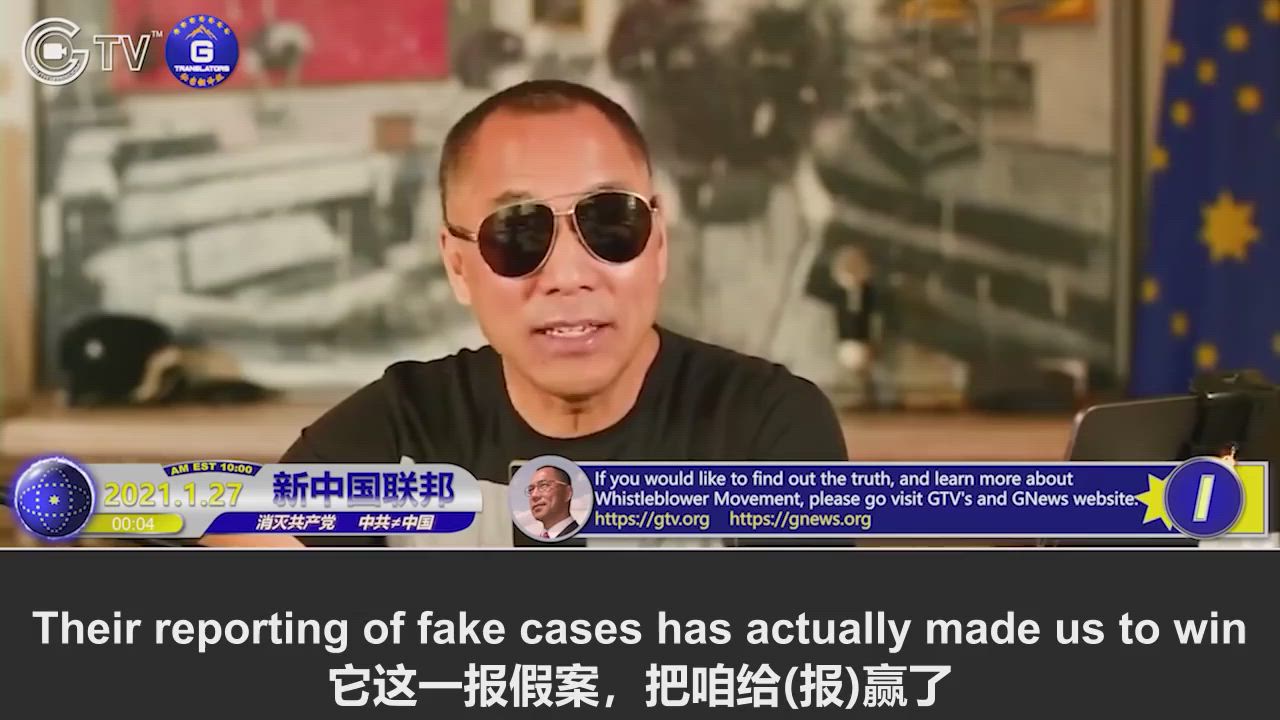 1/27/2021 Miles Guo: The CCP filed fake complaints about GTV, which has actually led us to win; many fellow fighters being threatened by the CCP were able to leave China, and our fellow fighters are really everywhere! Mr. Guo is discussing with the SEC on the possibility where the GTV stockholders shall have the option to withdraw stockholding or keep it; GTV may be relocated from the U.S. to another country, but it grants the most freedom and safety, providing you with all kinds of options