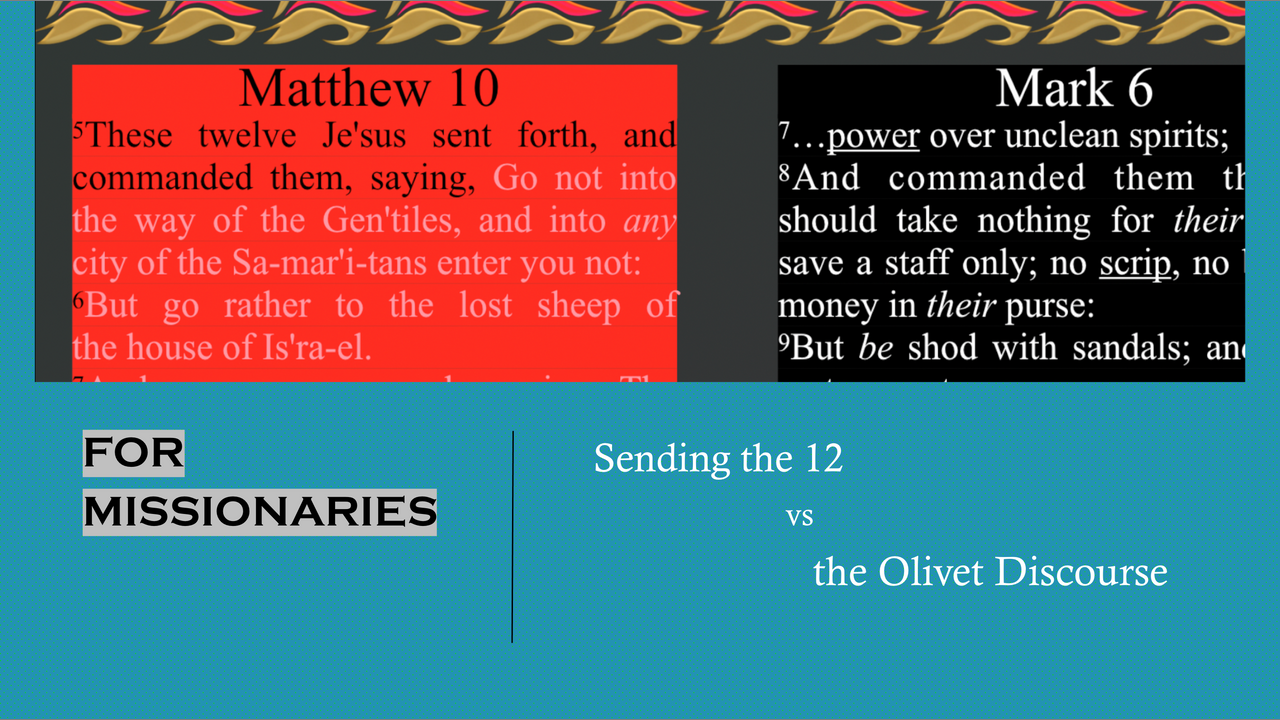 226. Rubric pt 1. Instructing Missionaries. Matthew 10, Mark 6:8-11, Luke 9:3-5