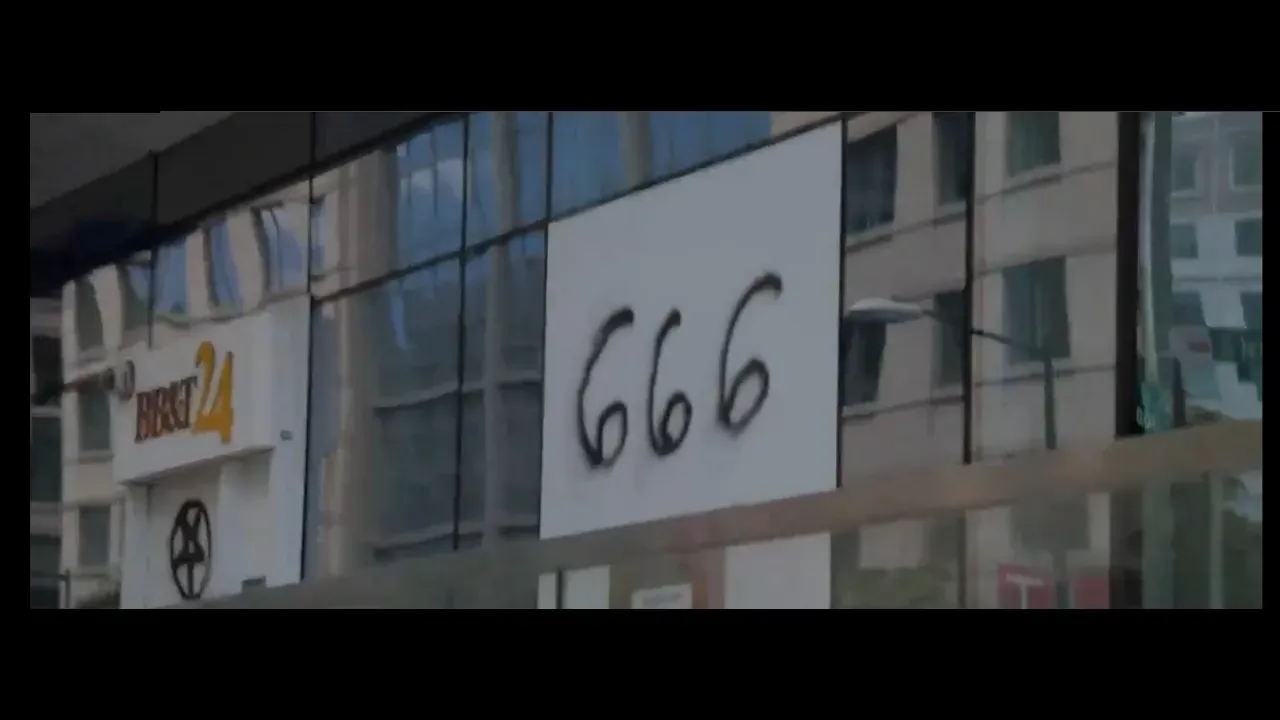 SATANIC GRAFFITI/SYMBOLS LEFT ON BUILDINGS, in addition to smashed windows, etc.