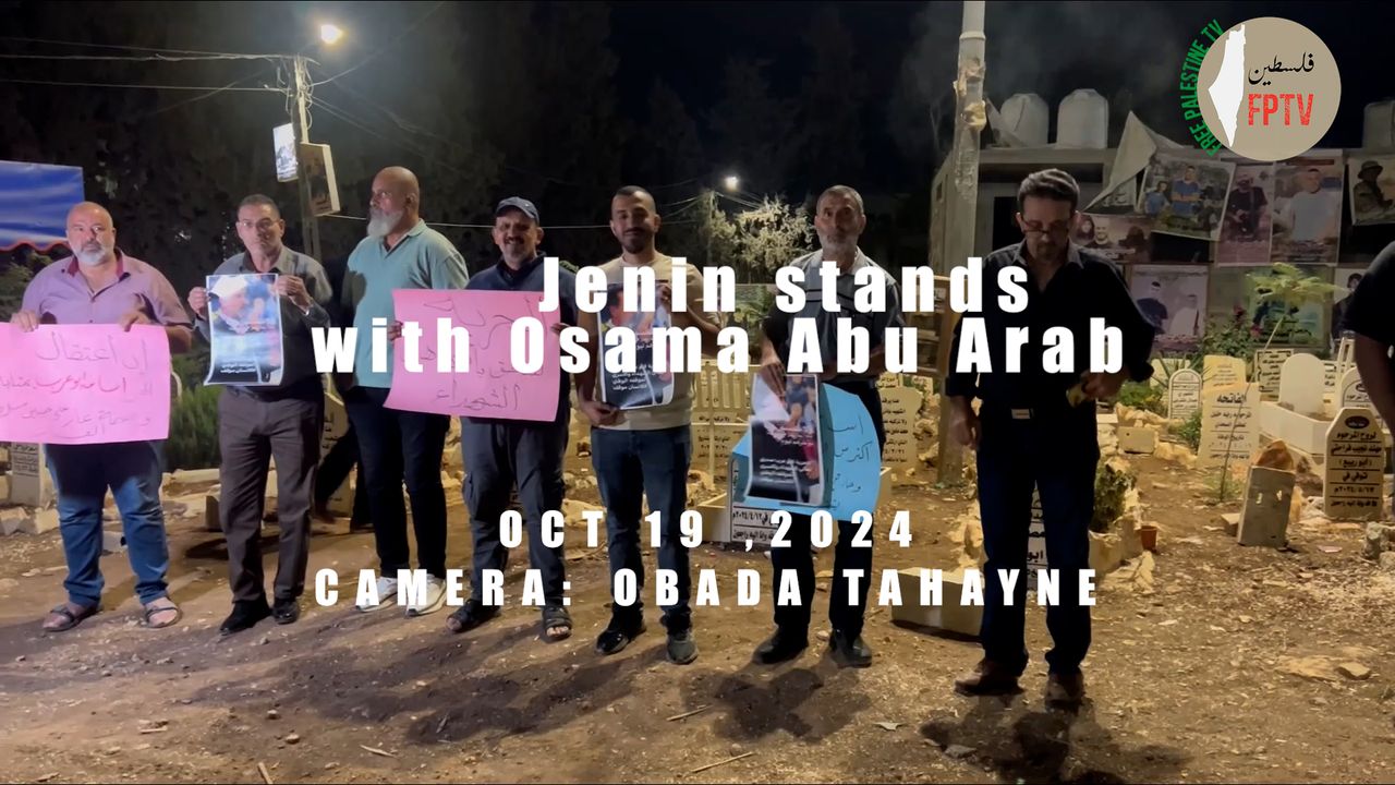 Families of martyrs organised a vigil at the Jenin Camp cemetery to denounce the “Palestinian Authority” for detaining Osama AbuArab who acts as the spokesperson on behalf of the families. Obada Tahayne interviews some of the participants.