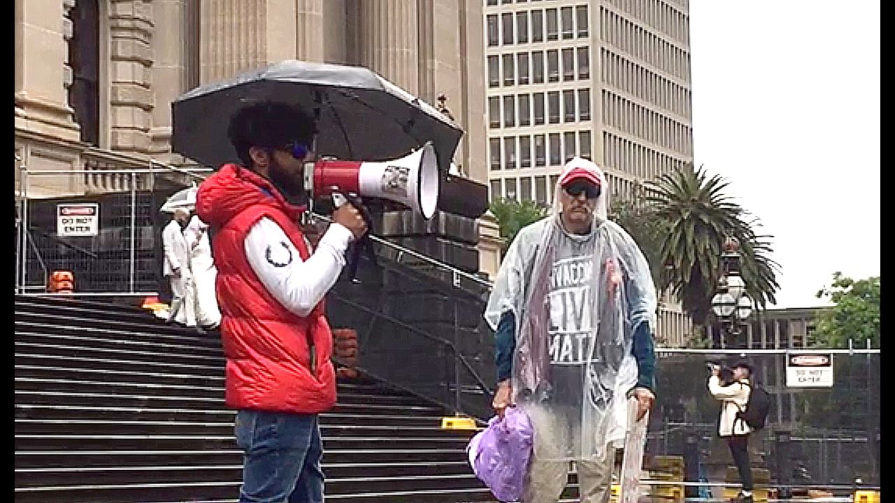 With the weather the way it was, we decided to stay put and make our speeches on the steps of Parliament House. A TV cameraman got roasted for being there. The speech topics were wide and varied addressing many corrupt government actions - driven by the WEF agenda. We all agreed to celebrate our year of rallies next Saturday so we are hoping for finer weather. Hear that you cloud seeding pilots. Take the day off spraying all that shit in the air.
