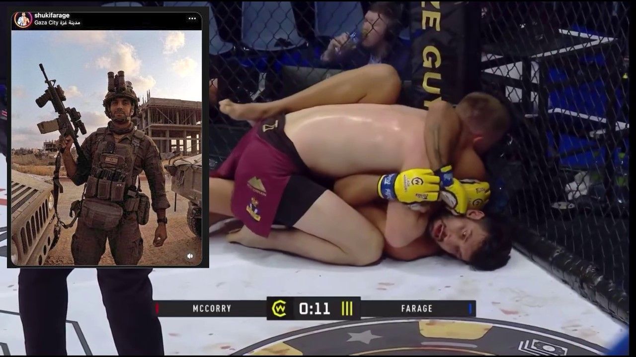 West Belfast MMA fighter shouts ‘Free Palestine’ in face of Israeli opponent.