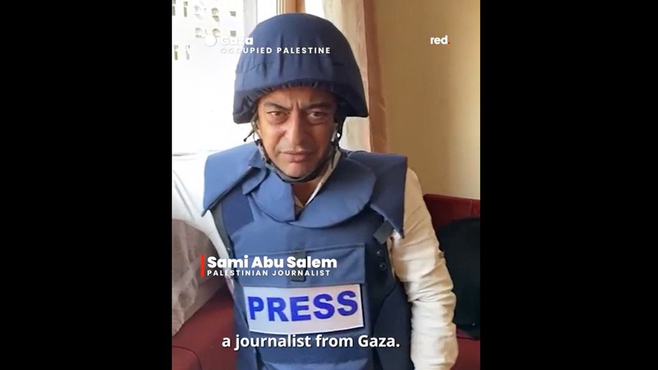 Watch Gaza journalist Sami Abu Salem reporting that "journalists in Gaza cannot work [...] because there is no safe place in Gaza. We can't do our work." – Israel's relentless bombing is razing Gaza to the ground and killing journalists, medics, and other civilian rescue personnel.