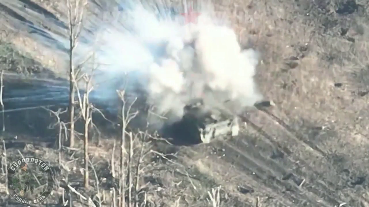 Drone operators of the "Pavel Sudoplatov" battalion using FPV-drone-based loitering munition to attack NATO Proxy Force. Among others destroying German-made/supplied Marder 1A3 infantry fighting vehicle and a US-supplied Stryker armored personnel carrier.