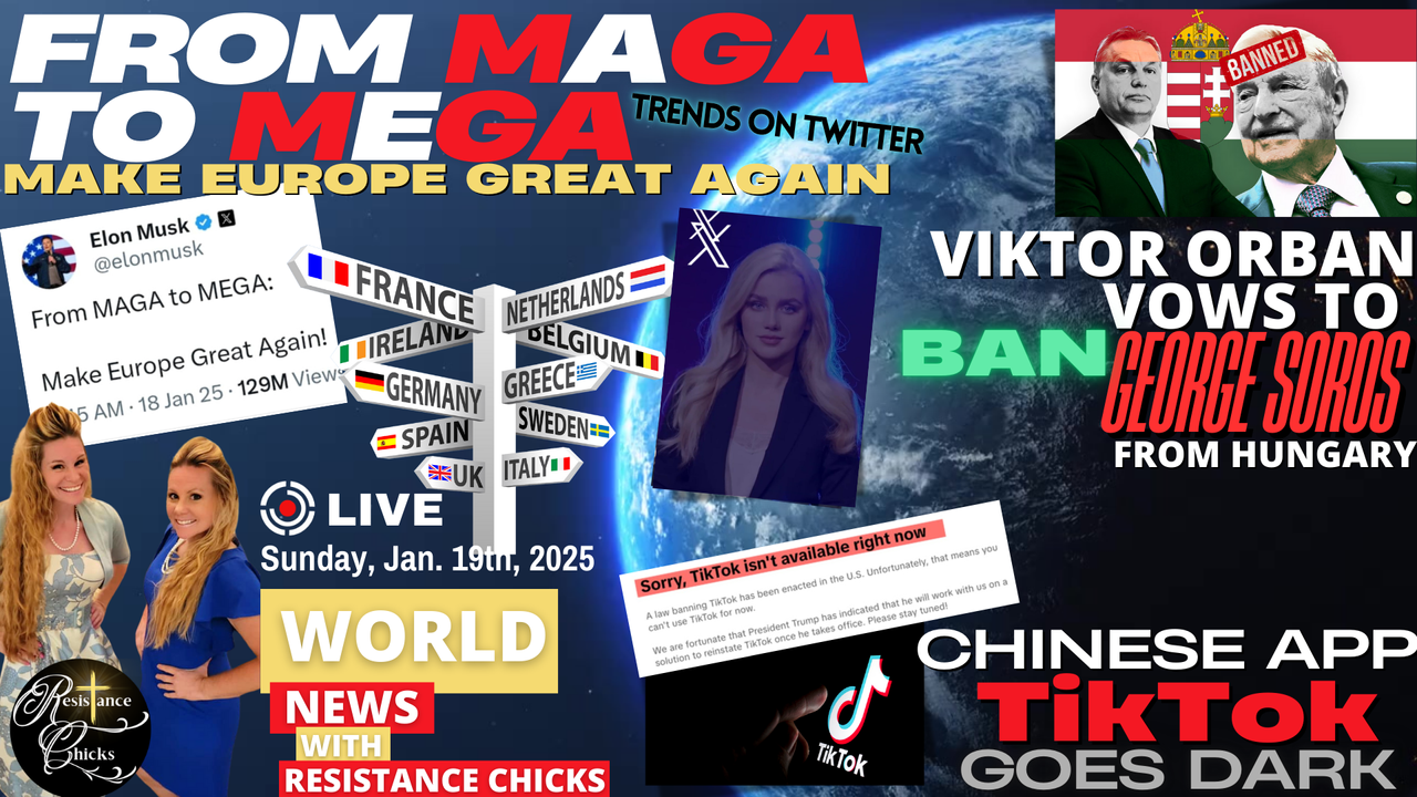 World News Report: MAGA meets MEGA- Make Europe Great Again Trends on Twitter, Elon retweets the Netherlands' Eva Vlaardingerbroek's plea to revive European values. Times up for TikTok as the Chinese app goes dark, although Donald Trump vowing to issue an EO to stop it on Monday after the inauguration, imploring tech companies not to abide by the ban. Viktor Orban vows to ban George Soros from Hungary. All that & much more inThis Week’s Top World News Stories! Read More: https://www.resistancechicks.com/from-maga-to-mega/