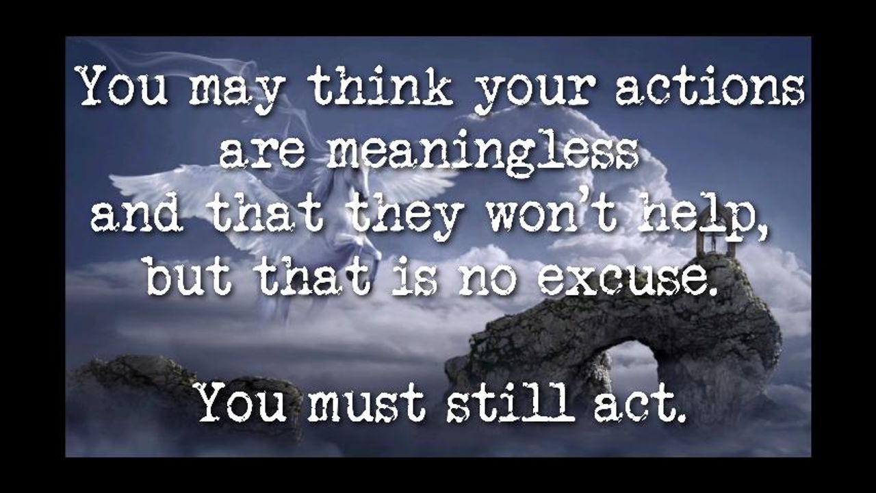 You may think your actions are meaningless and that they won't help, but that is no excuse, you must still act.