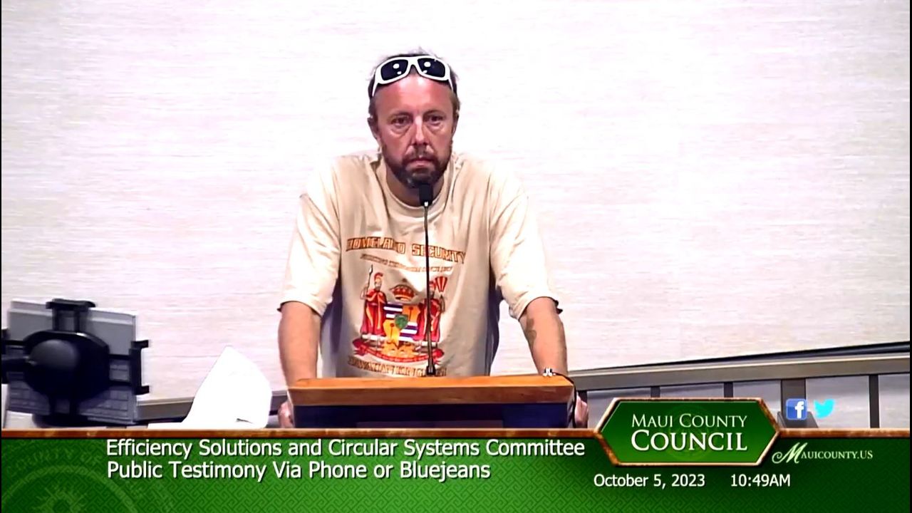 Mario Vendetti trying to get answers at the Maui Council meeting October 5. Water quality is bad.