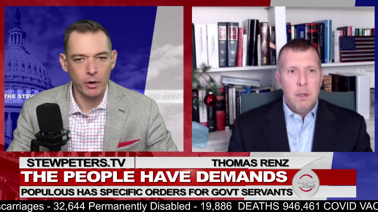 The Stew Peters Show. America has more than a million lawyers. Thomas Renz is only one of them, and he hasn’t been a lawyer very long. Now, Renz is promoting a letter he has drafted for the public to send to their elected representatives. The letter points out many of the same things you’ve heard on this program: That the vast majority of Covid victims recover, that there is ample evidence of deaths linked to the vaccines, that the vaccines seem barely effective at stopping Covid infections, that shots are being forced on children even though they are at zero statistical risk of death from the virus. He joins us to discuss.