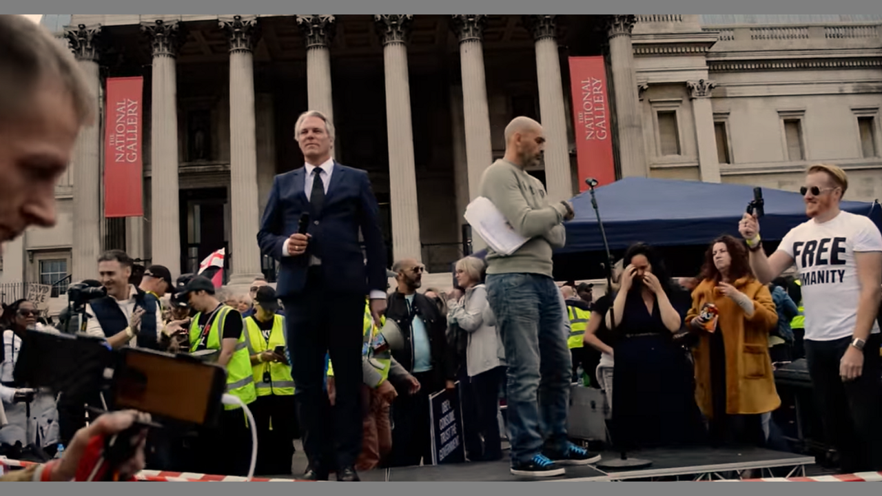 Saturday 26th September 2020 Trafalgar Square Police move in behind stage.