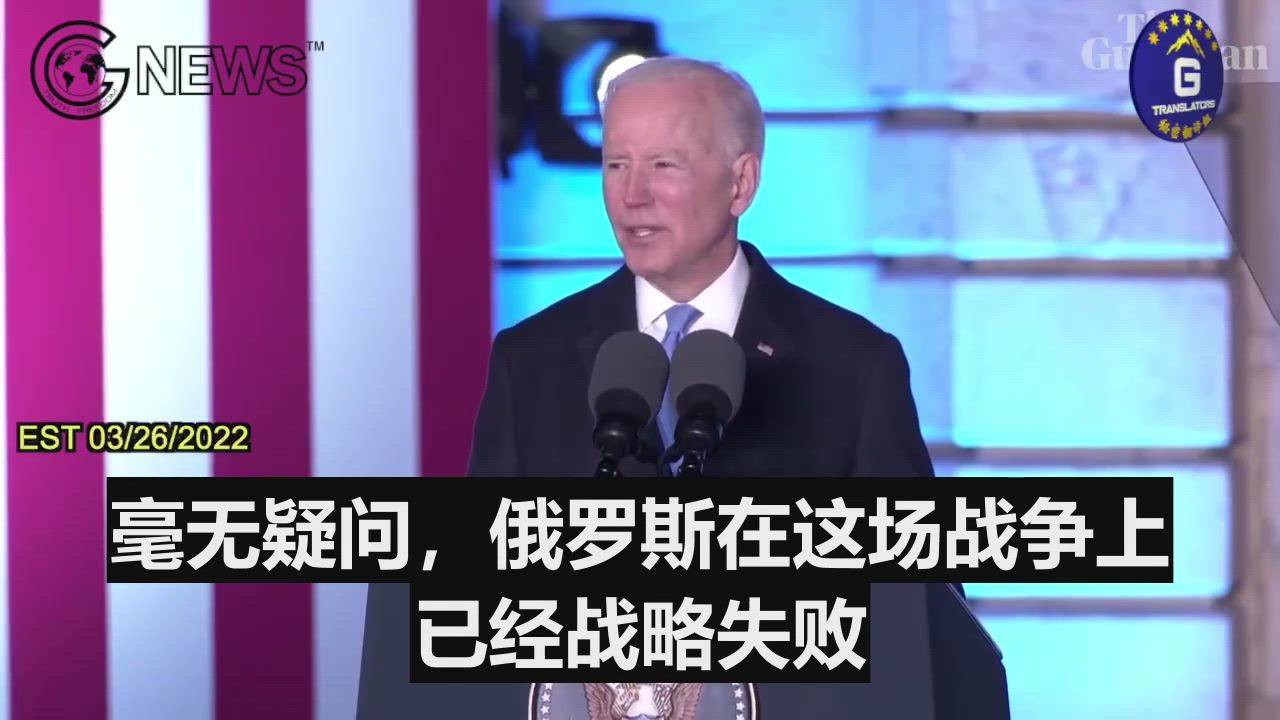 03/26/2022 President Joe Biden said Russian leader Vladimir Putin ‘cannot remain in power’ during his speech at the Royal Castle in Warsaw, Poland. He stated the war had no doubt been a strategic failure for Russia. Ukraine will never be a victory for Russia.