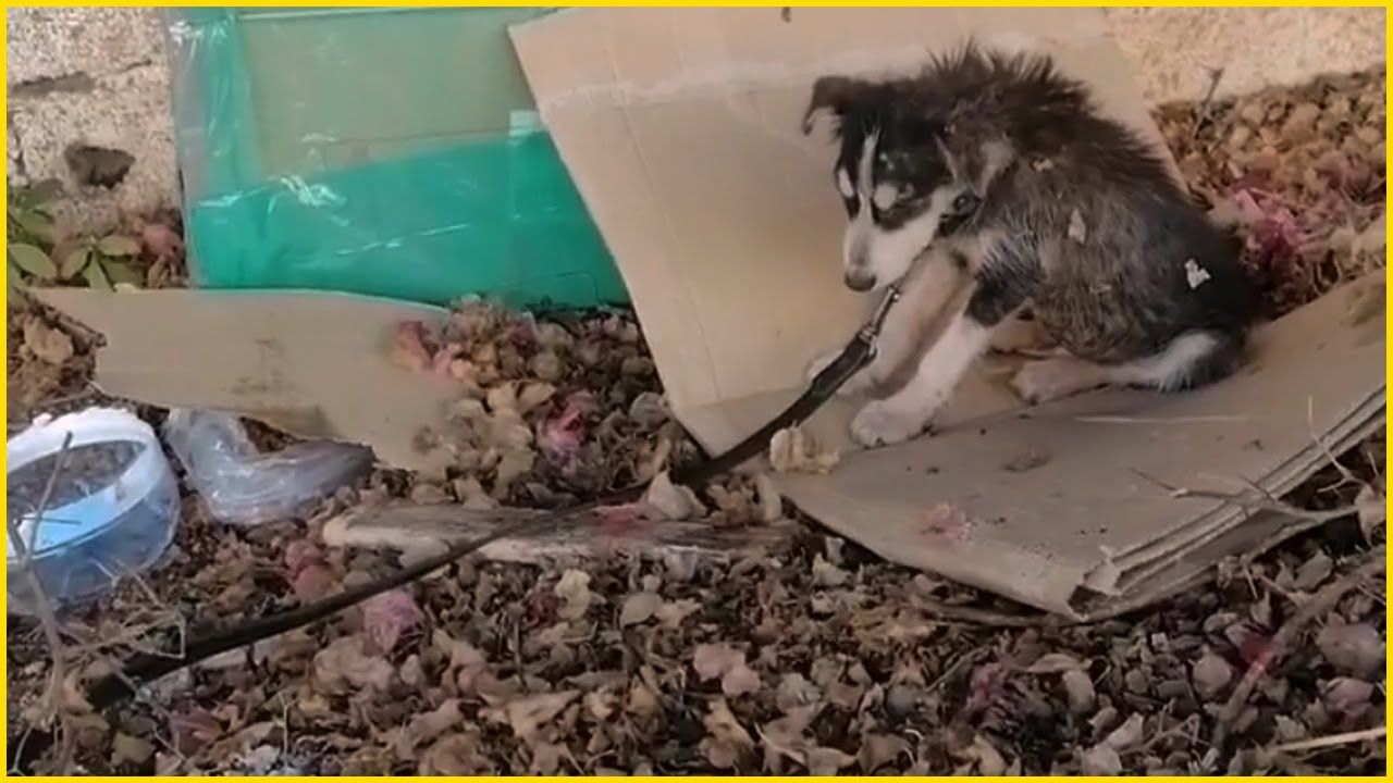 This husky mix puppy has been chained to the garden by his owner since he was a baby