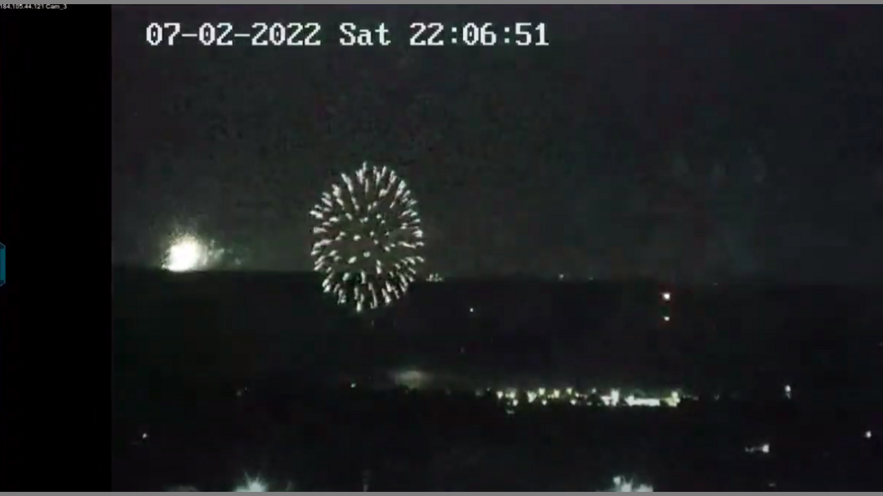 Fireworks display at Gnadenhutten, Ohio for 2022. The town display starts at 10:00, there are numerous displays all night long in the neighboring towns and out into the hills. The town display is about 4 miles away, the displays on the distant hilltops would be much farther. The echoes off of the hills are the best part of the evening...unfortunately, there is no audio.
