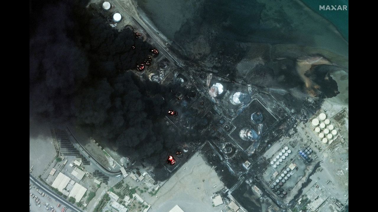 Before and after the Israeli Air Force strike on targets in the port of Hodeidah.