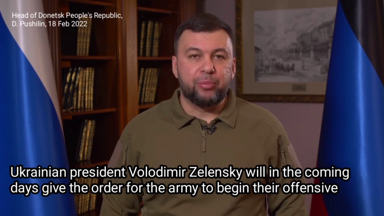 "Ukrainian President Volodimir Zelensky due to give order to attack Donbass - Head of DPR, D. Pushilin. Both Republics of the Donbass have issued their civilian populations notice of evacuation." - Translated by Inessa