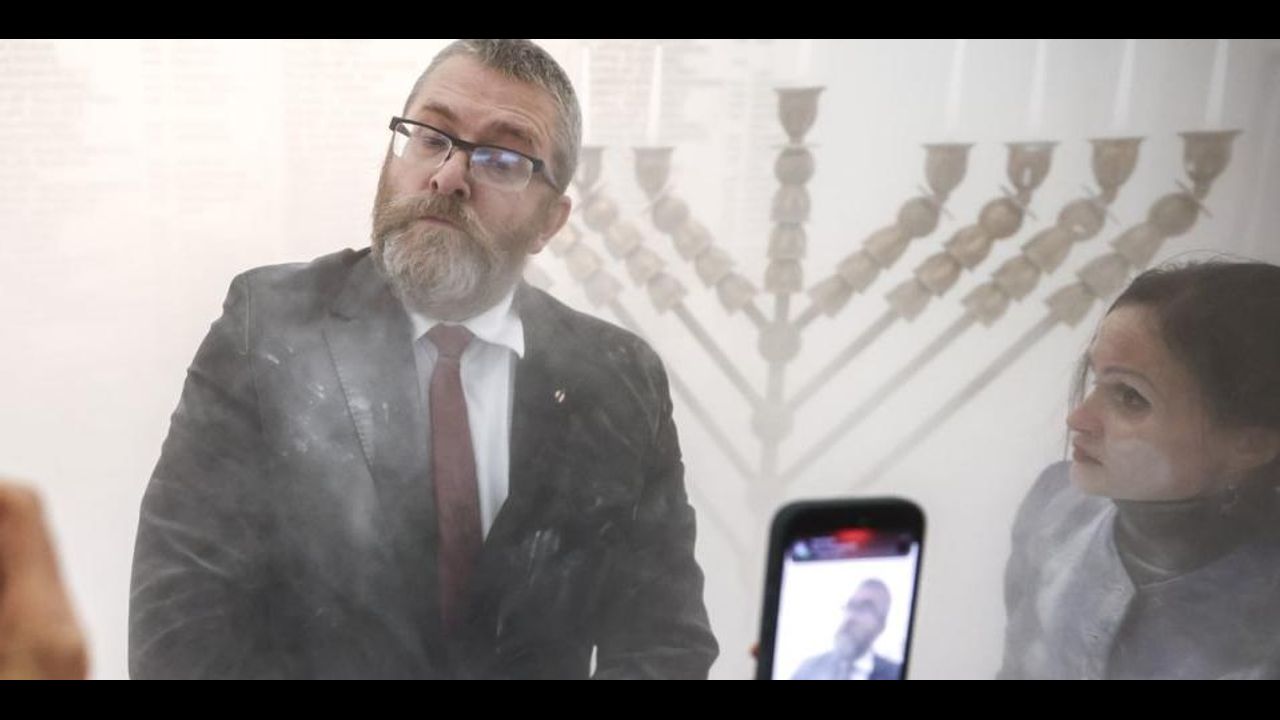 In the footage shared by Polish broadcaster TVN24, Braun is seen grabbing a fire extinguisher in the halls of Parliament and using it to put out candles on a menorah, the candelabrum used through the eight nights of the Jewish holiday.