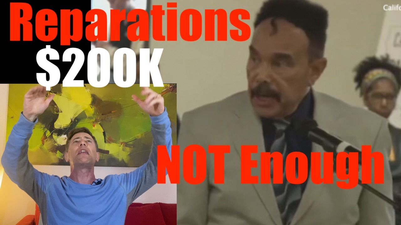 The good Reverend Tony Pierce of California declared to the reparations board that $223,000 per black citizen was not nearly enough, and who can possibly blame him. Not only was California not a slave state, but he believes that all blacks should be able to participate and that residency requirement should be eliminated. And I think that this man recognizes that he has the guilty leftist progressives over a barrel and is trying to extract as much money from them as possible and good for him.#reparations #california #tonypierce #woke