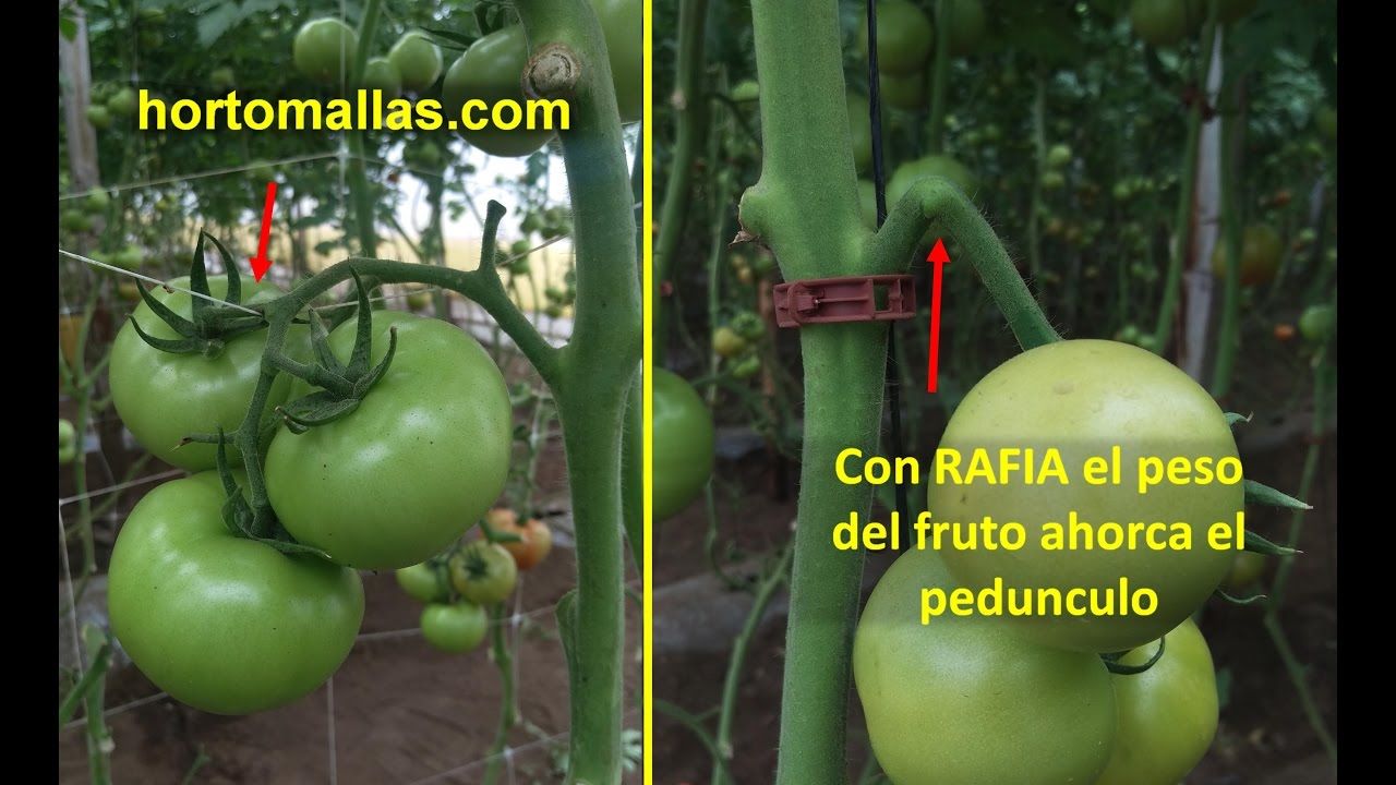 La malla espaldera HORTOMALLAS instalada por ambos lados del surco de un cultivo de tomates permite ahorrar mano de obra y reducir la incidencia de la transmisión mecánica de fitopatógenos, ya que al requerir menos mano de obra se reduce la posibilidad de un contagio. Esta malla tutora facílita también el tutorado de cucurbitaceas como el pepino o el melón. Incrementa la densidad de siembra y aumenta el flujo de aire, reduciendo la humedad que causa hongos dañinos al cultivo.