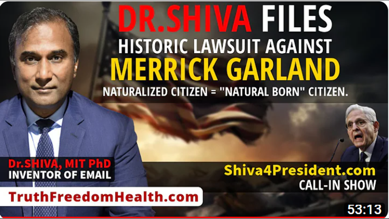 In this discussion, Dr.SHIVA Ayyadurai updates us on his historic lawsuit against MERRICK GARLAND and the fight to demand the end of illegal discrimination between a Naturalized Citizen and "Natural Born" Citizen. Blog Post: vashiva.com/dr-shiva-live-dr-shiva-files-historic-lawsuit-against-merrick-garland-naturalized-citizens-natural-born-citizen/