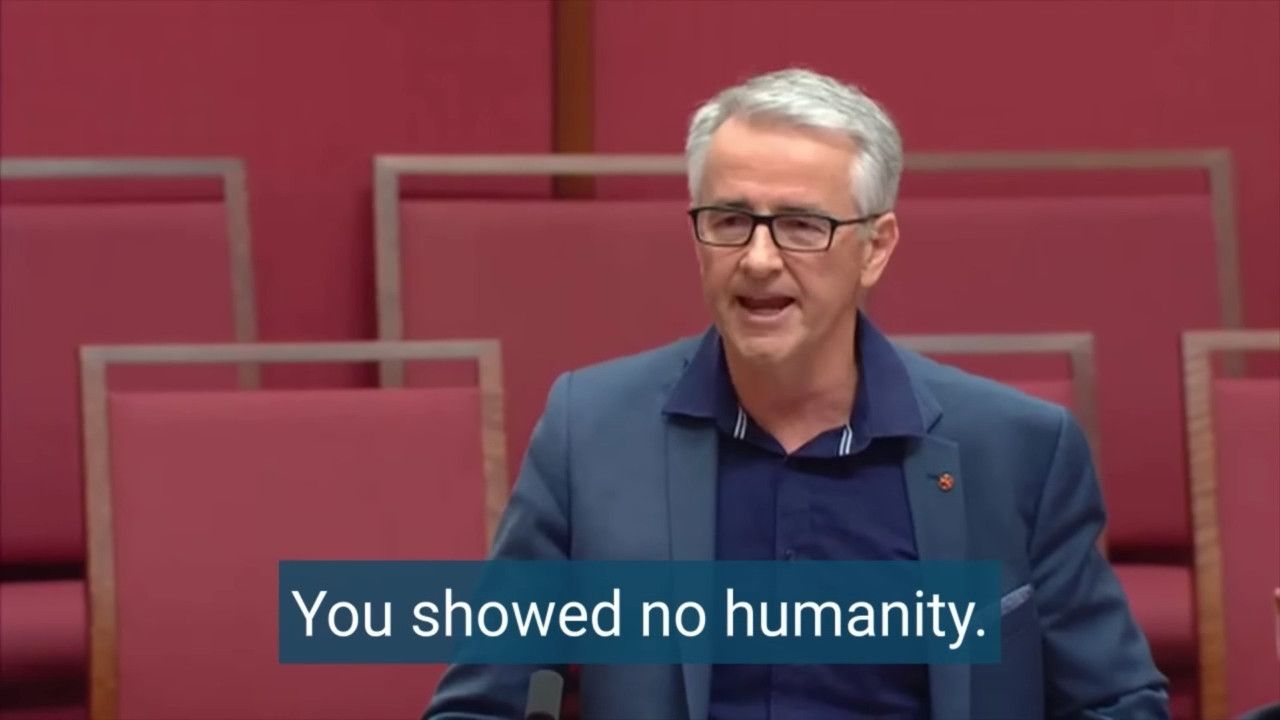 Senator Gerard Rennick: https://rumble.com/v1ye96n-the-greens-laugh-at-jab-injuries-and-shut-down-debate-about-jab-mandates-se.html