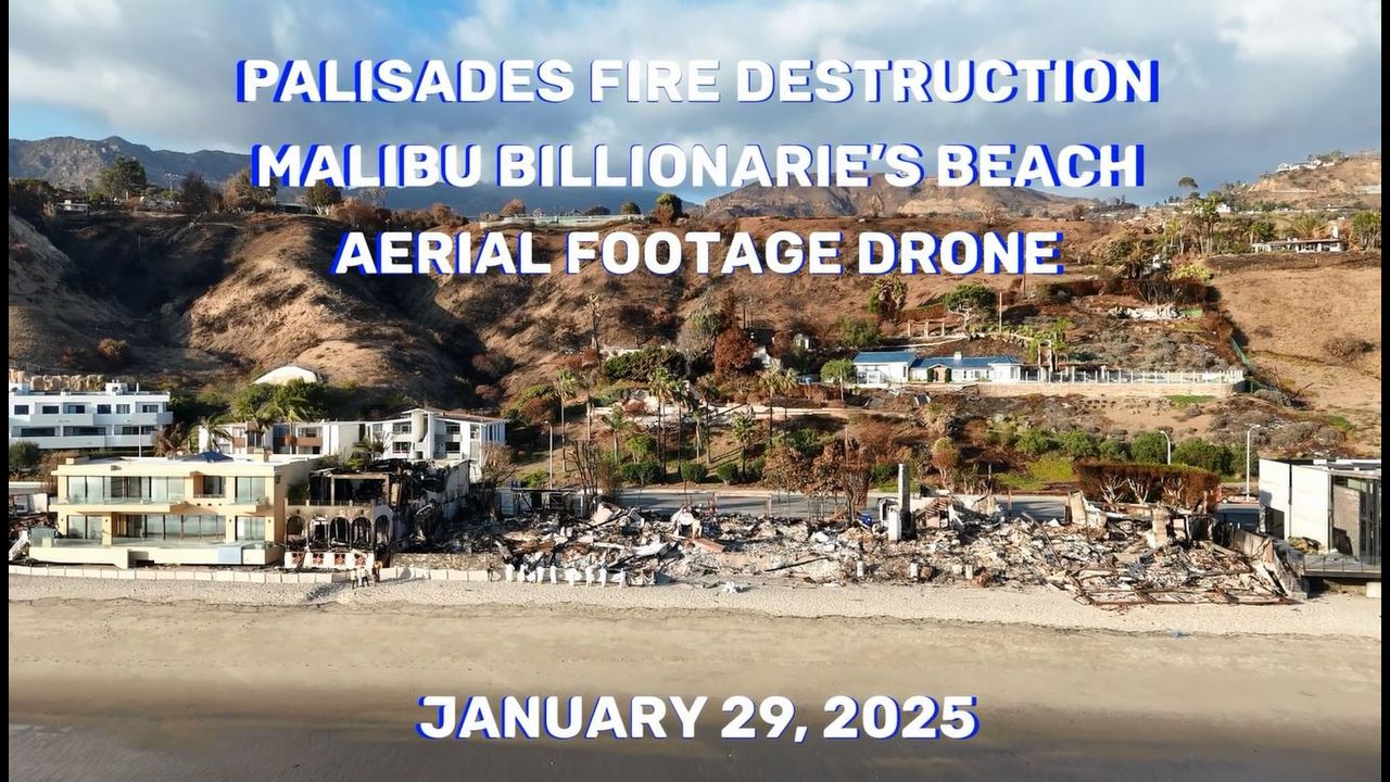 Palisades Fire Malibu Billionaire's Beach Destruction and Home Damage Aerial View Drone