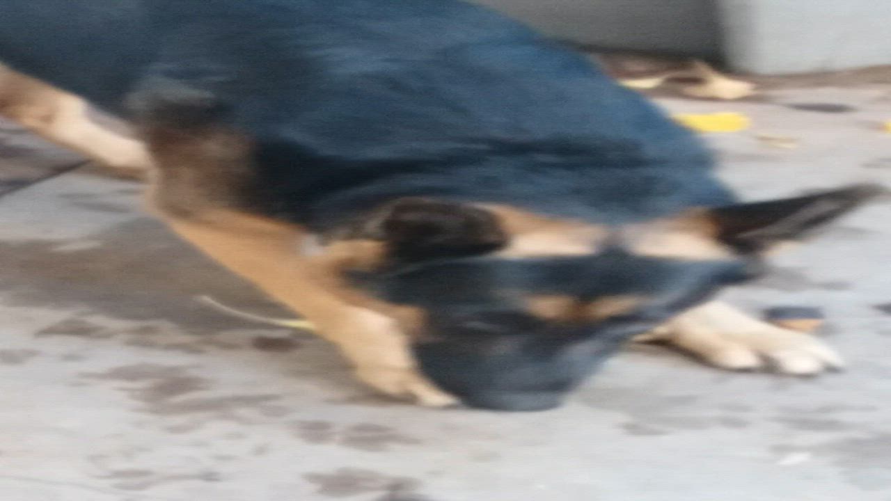 German Shepherd eats a turkey bone