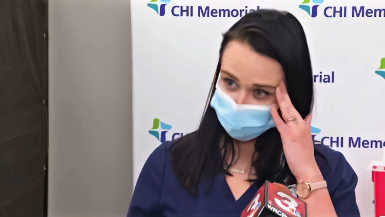 Nurse get covid vaccine and gives interview about how happy she is.... and GETS SICK AND PASSES OUT!