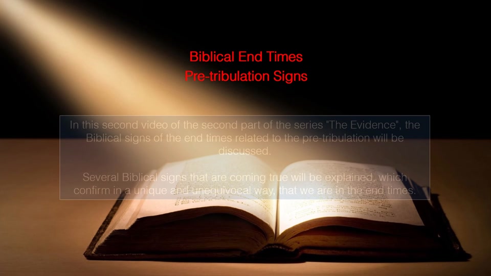 In this second video of the second part of the series "The Evidence", the Biblical signs of the end times related to the pre-tribulation will be discussed.