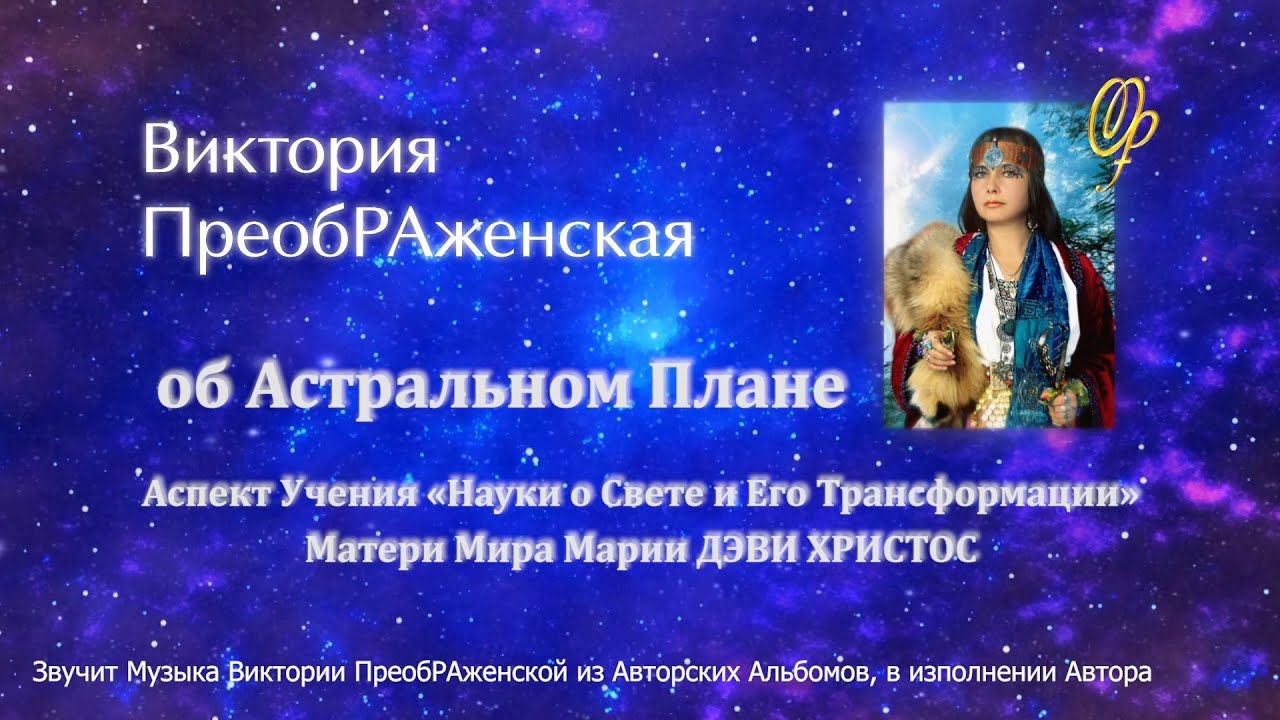 Виктория ПреобРАженская об Астральном Плане. Аспект Учения «Науки о Свете и Его Трансформации» Матери Мира Марии ДЭВИ ХРИСТОС https://youtu.be/-gra3sNMSyY