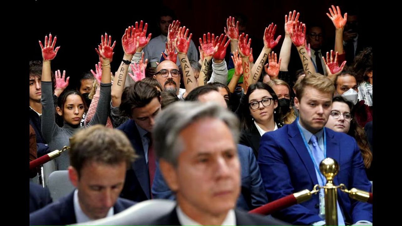 Secretary of State Antony Blinken and Secretary of Defense Lloyd Austin asked U.S. lawmakers to provide billions more dollars to Israel on Tuesday at a congressional hearing interrupted repeatedly by protesters denouncing American officials for backing genocide against Palestinians in Gaza.