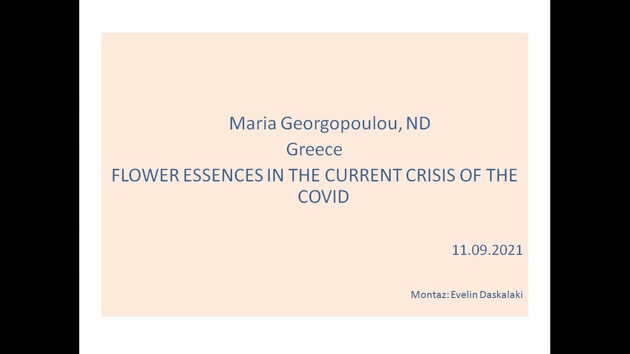 International Health Congress 2021 Prague .Maria Georgopoulou, ND Greece FLOWER ESSENCES IN THE CURRENT CRISIS OF THE COVID 11.09.2021