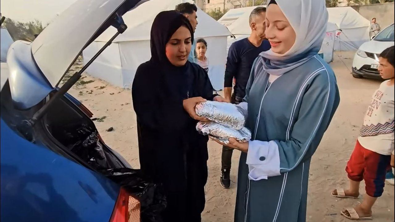 Israel Gaza War Distributing Rice and Chicken Meals to the displaced in Gaza