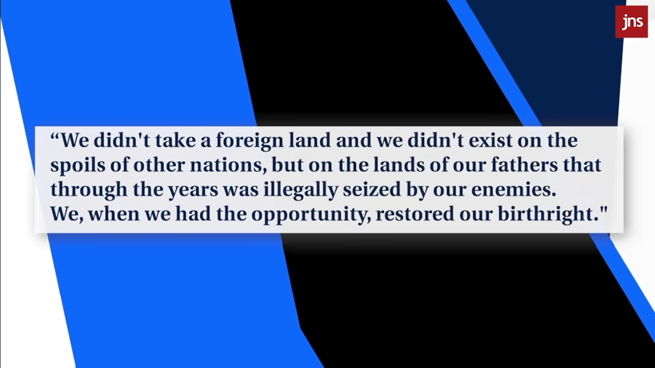"We didn't take a foreign land and we didn't exist on the spoils of other nations, but on the lands of our fathers that through the years was illegally seized by our enemies. We, when we had the opportunity, restored our birthright." - Shimon Maccabee to the Greek Antiochus 2158 year ago. 3626 -136BCE