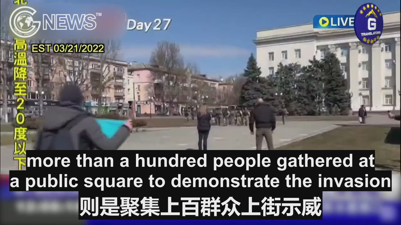 03/21/2022 On day 27 of Putin’s invasion, Russian army fired shots and threw flash bombs to disperse civilian protesters at a public square in Kherson, causing a number of injuries.